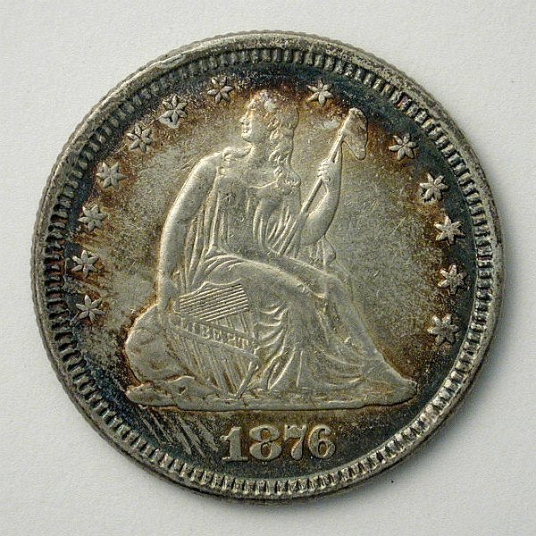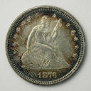 Left: 1876 Quarter Dollar, formerly in club collection. Right: 1894 Morgan Dollar, ICG AU-58.
