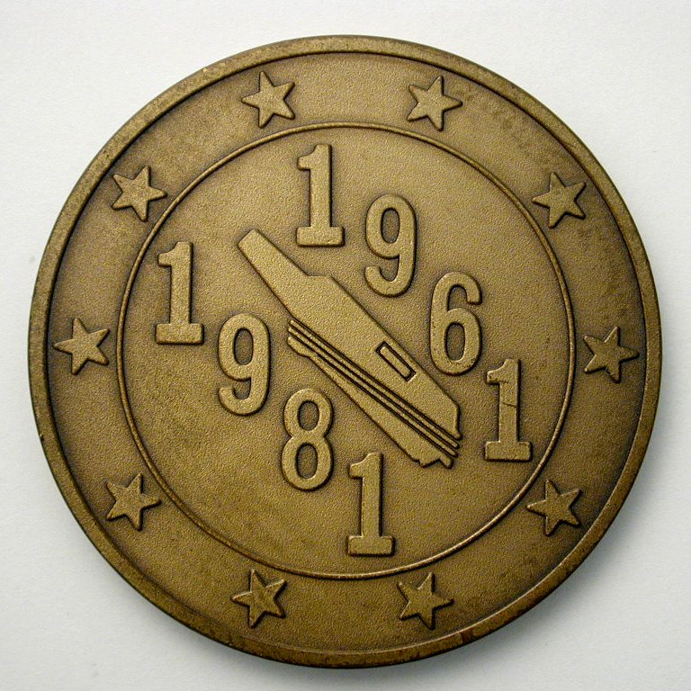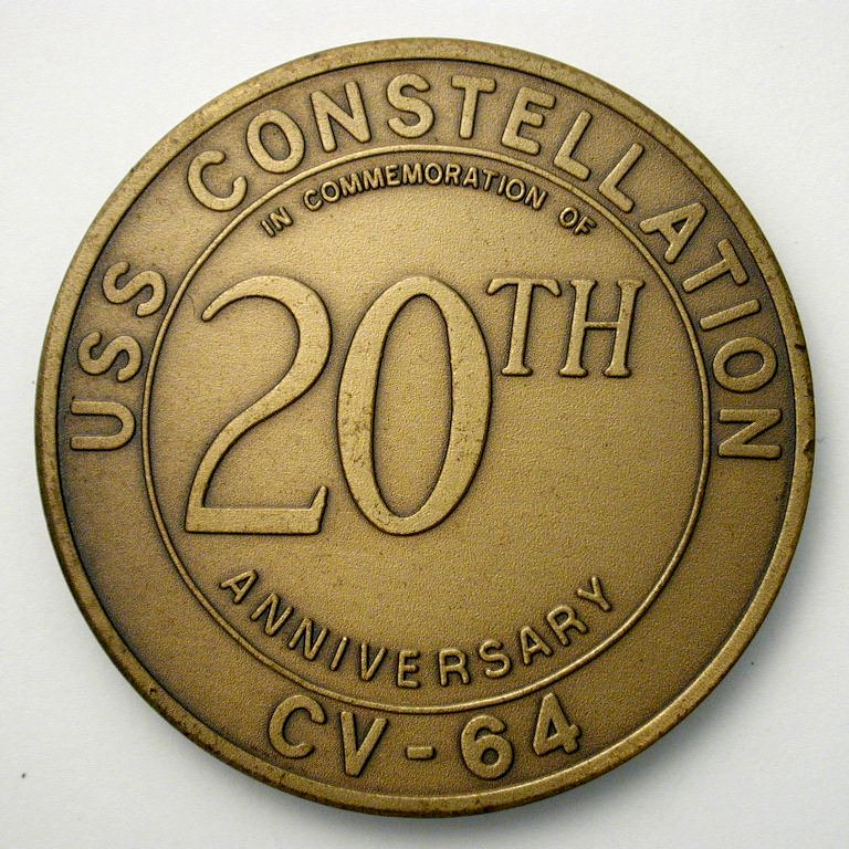 Left: Pikes Peak G.A.R. National Encampment medal, 1905. Right: USS Constellation 20th Anniversary medal, 1961-1981.