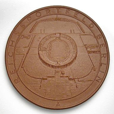 Left to right: large size ceramic medal from 1936 Berlin Olympics, 1983 ANS medal.