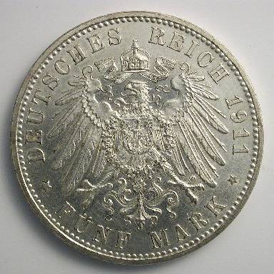 Right: 1911 Bavarian 5 mark coin, purchased at a bargain price in Europe!