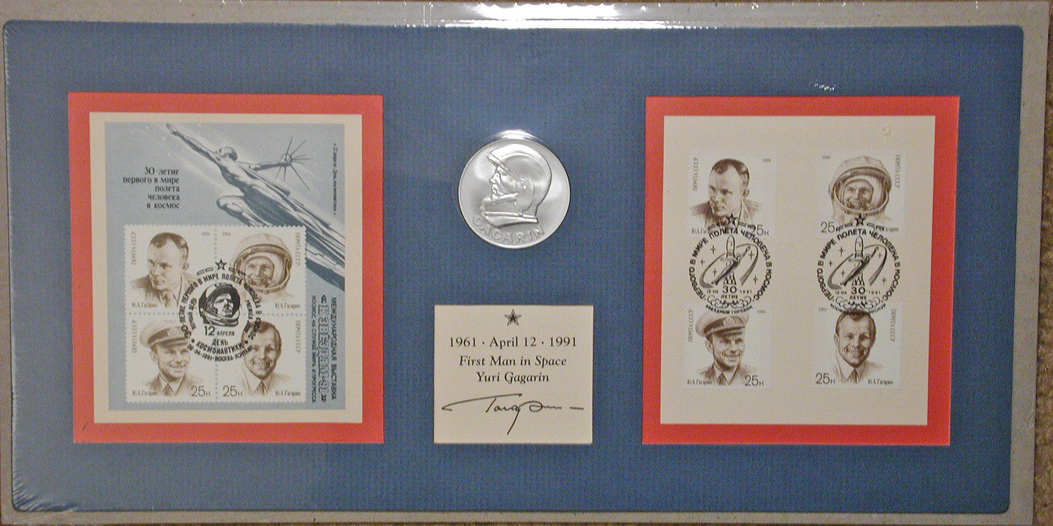 Yuri Gagarin, 1st Man in Space, Philatelic-Numismatic Commemorative Set, 1991.