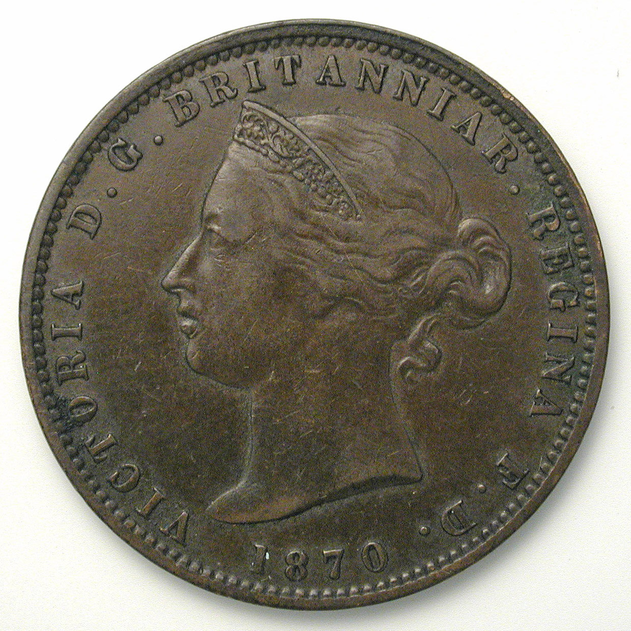 Right: 1870 States of Jersey 1/13 shilling, Queen Victoria.