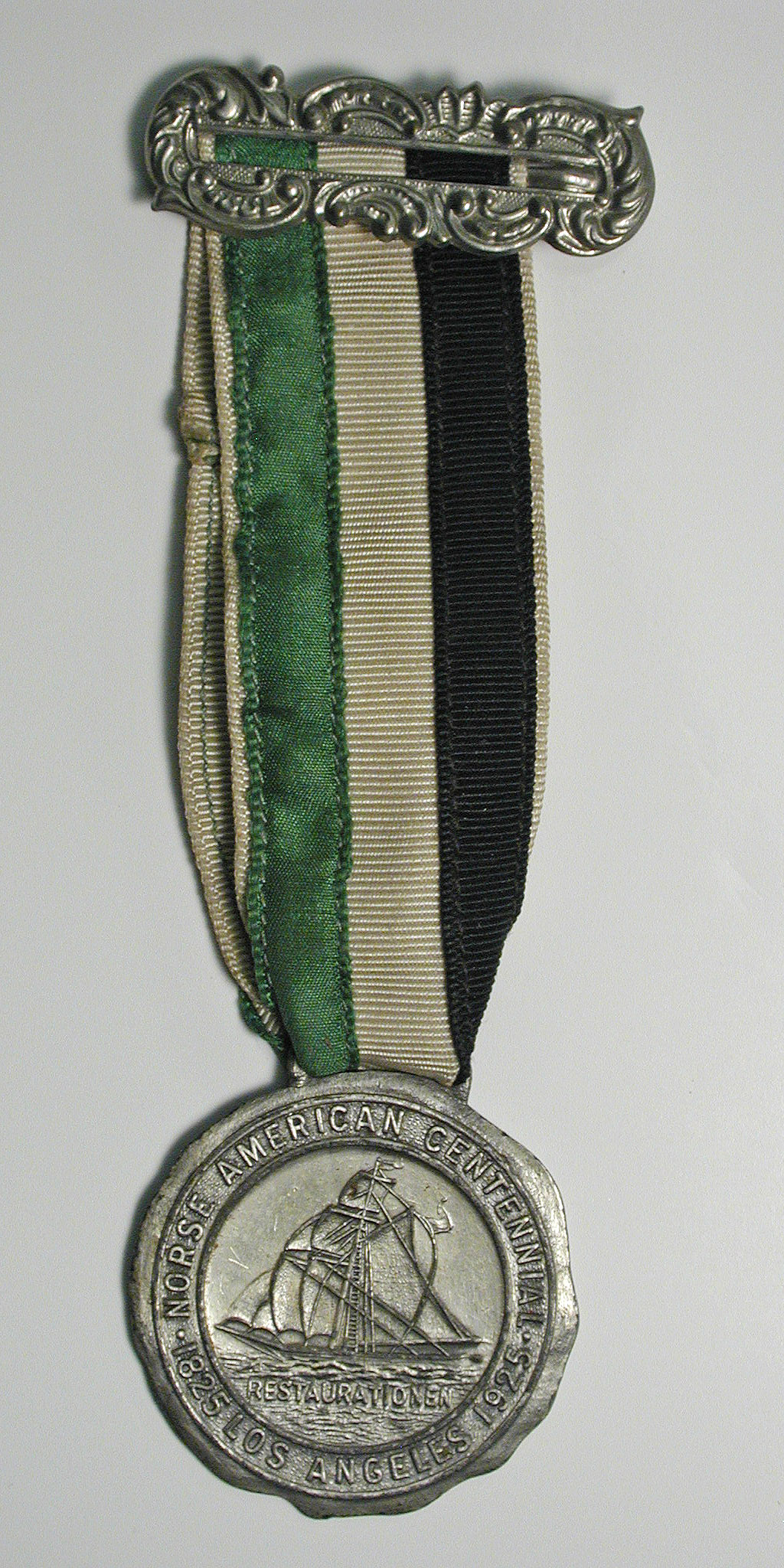 Right: Norse American Centennial badge, Los Angeles, 1825-1925.