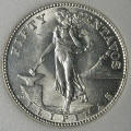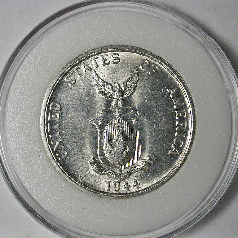 Right: 1944 Philippines 50 centavos coin, during period of US control.