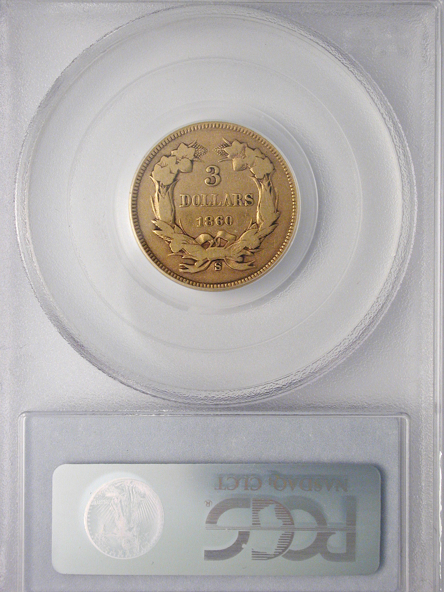Left: 1883 Liberty Nickel "Without Cents." Right: 1860-S $3 Gold Piece, PCGS VF20.