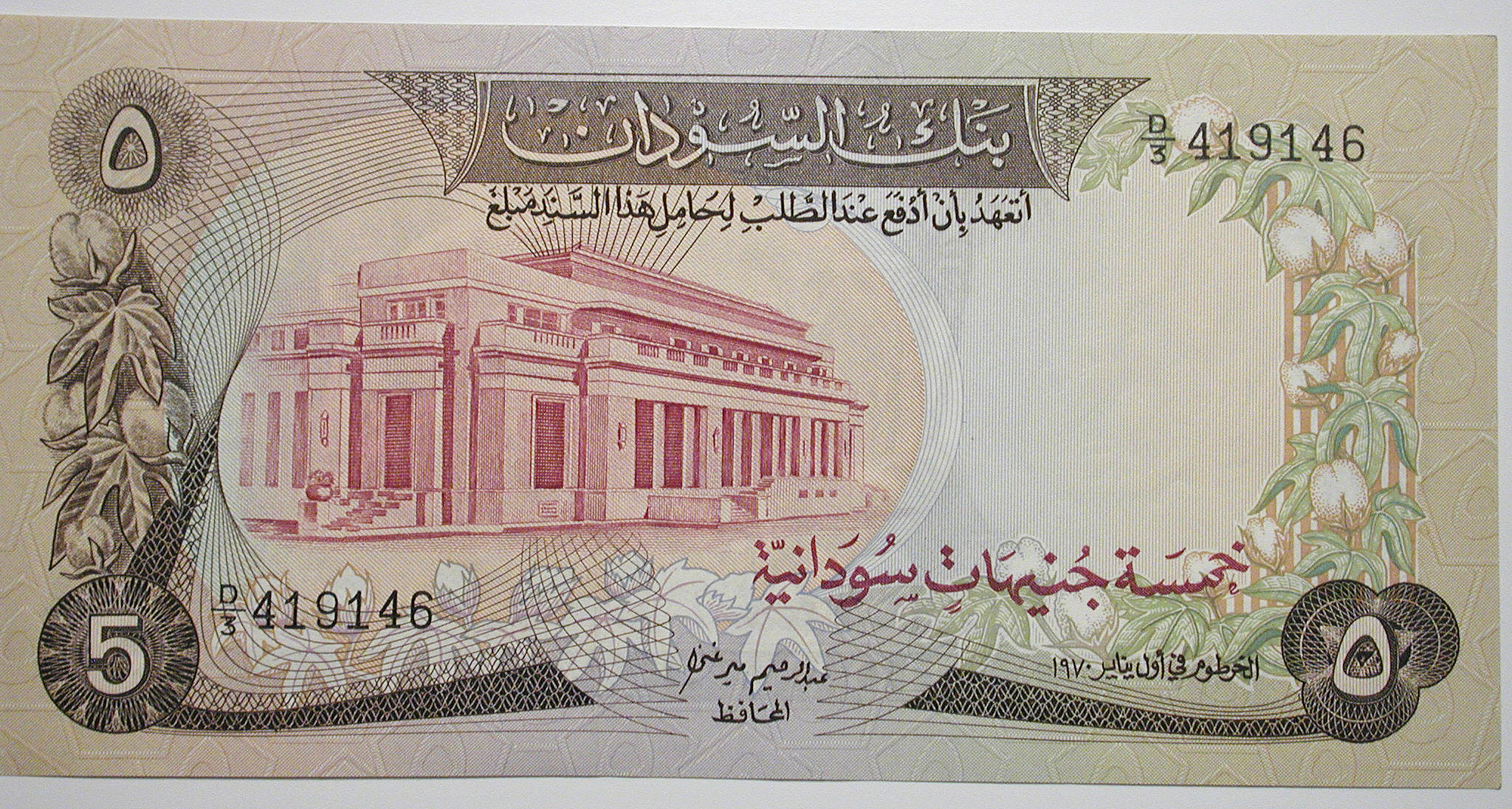 Bank of Sudan Five Sudanese Pounds banknote depicting African wildlife.