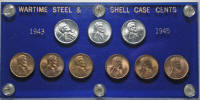 Left: Set of Wartime steel & shell case Lincoln Cents.