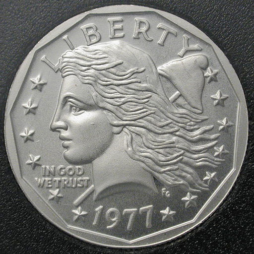Center: Apollo 11 sterling silver commemorative medal by Hayward.