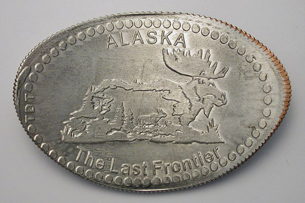 Right: "Lucky Penny" paperweight with New Mexico - Road Runner theme on reverse.
