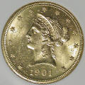 Left: 1901-S $10 Gold Coin (Eagle), ANI MS-62.