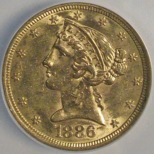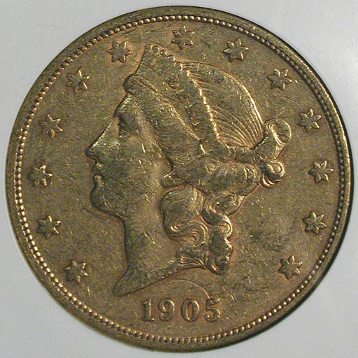 Left: 1886-S Half Eagle ($5 gold), NCS GSA Genuine. Right: 1905-S Double Eagle ($20 gold), NGC GSA XF-45.