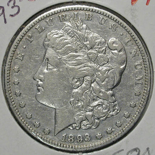 Left: 1893-S Morgan Dollar. Right: 1894 Morgan Dollar.