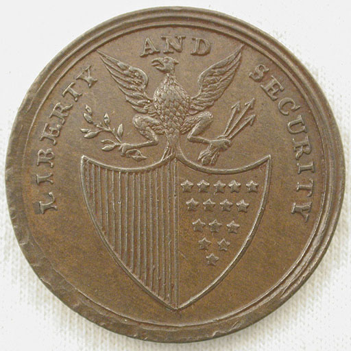 Left: 1790's George Washington Liberty and Security Penny, part of program given by Eric Holcomb. Right: 1897-O Dime, ANACS EF-45 Details, Cleaned.