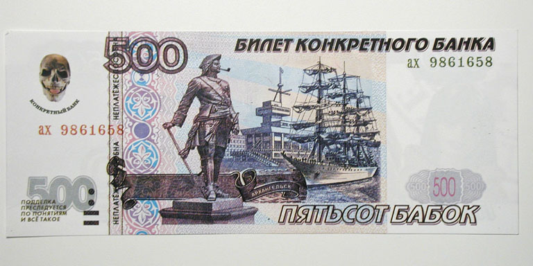 Privately issued Russian "Barbie" note to protest economic conditions.