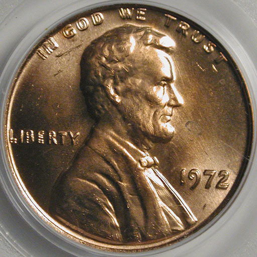 Center: 1972 Double Die Lincoln Cent, PCGS MS-65 RD (Red).