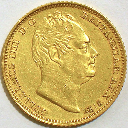 Upper Left: 1834 British Half Sovereign (gold).