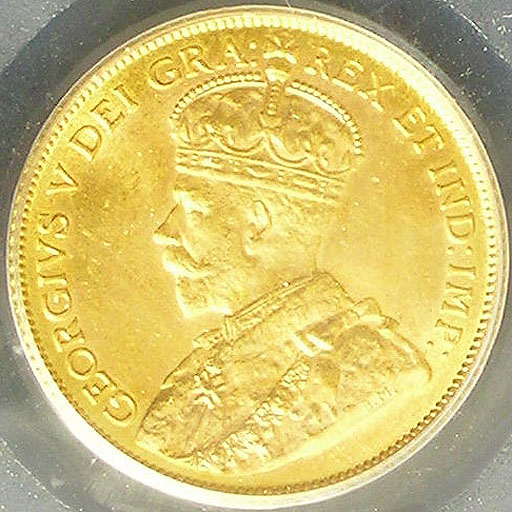 Left: 1912 Canadian $5 gold coin, PCGS MS63.