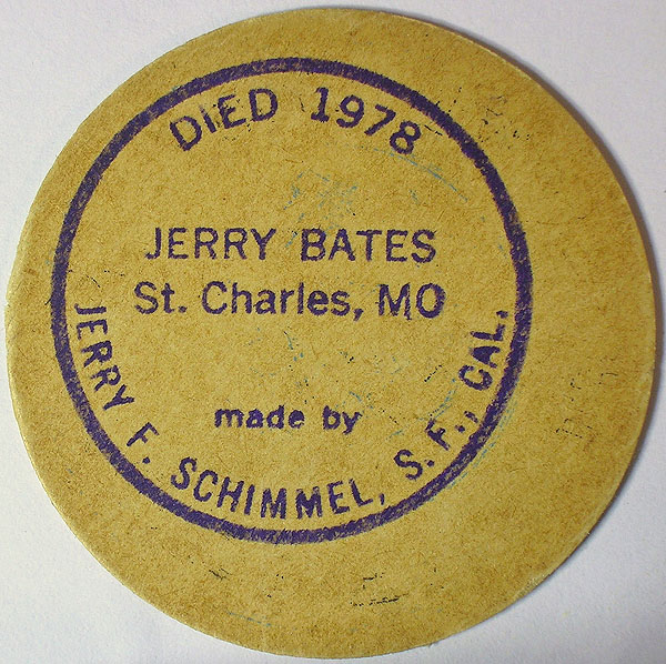 Missouri cardboard one-mill sales tax receipt, counterstamped on reverse to honor Jerry Bates.