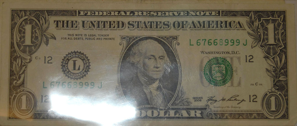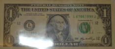 Right: 2006 U.S. dollar bill with serial number ending in 999.