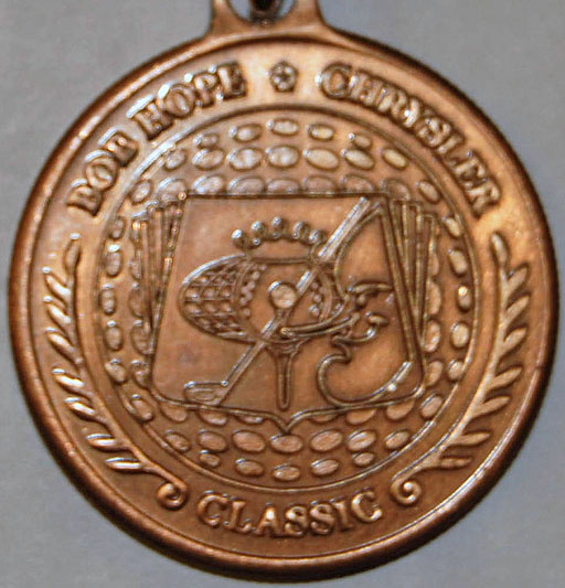 Left center: Bob Hope / Chrysler Classic golf tournament medallion.
