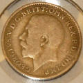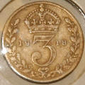Left: 1918 United Kingdom King George V 3 pence, KM# 813.