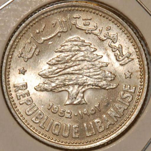 Right (2): 1952 Lebanon 50 piastres with cedar tree, KM# 17.