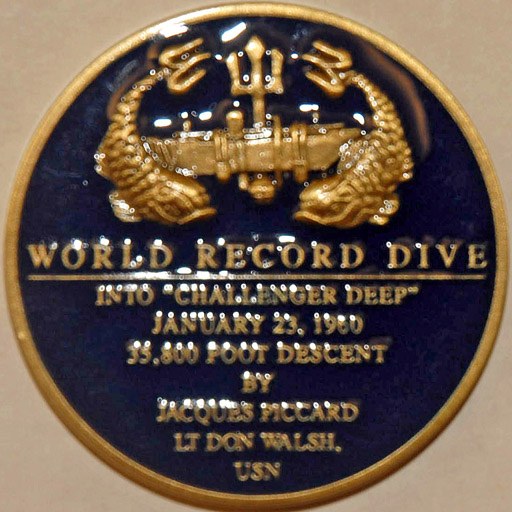 Right: 1960 World Record Dive commemorative medal / "challenge coin."