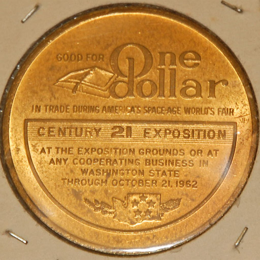 Left: 1962 Seattle World's Fair (Century 21 Exposition) so-called dollar.