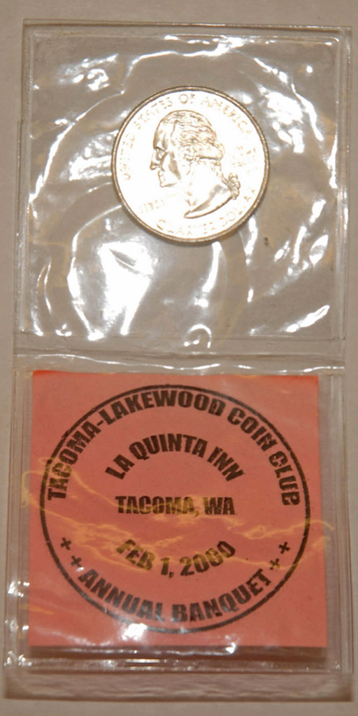 Right (1): 2000 TLCC banquet souvenir with state quarter.