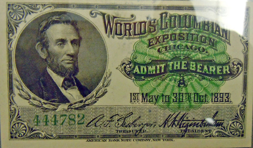 Top: 1893 admission tickets from World's Columbian Exposition, Chicago, Illinois.
