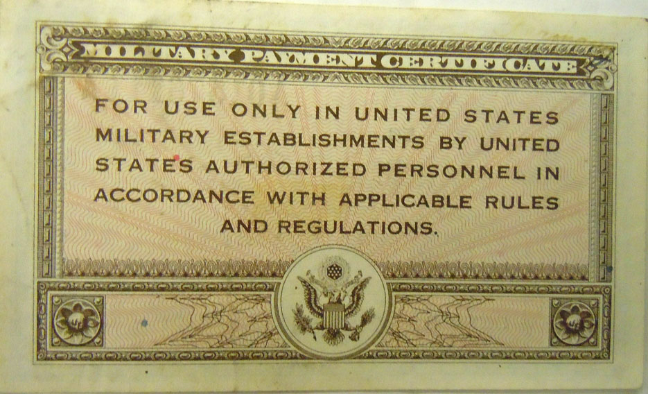 Right: U.S. Military Payment Certificate, $1, Series 461.