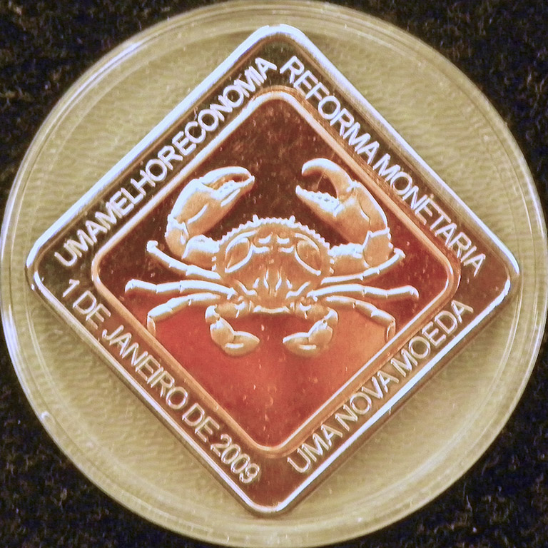 Right: 2009 Banco de Cabinda 4 reais coin.