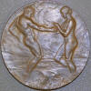 Center: "Divine Homo" man and woman art medal.