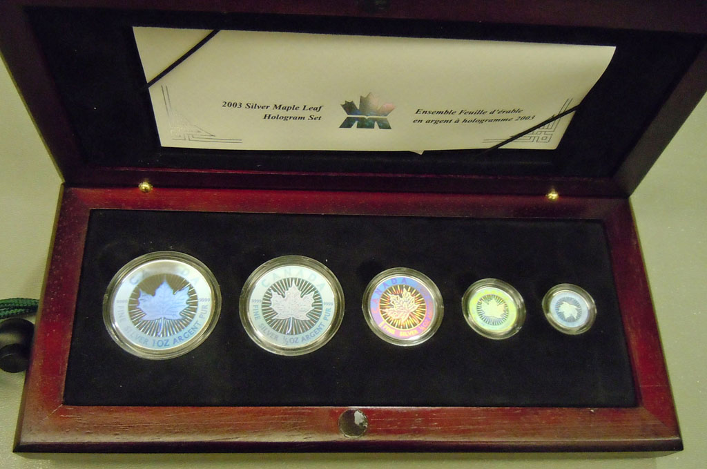 Left: 2003 Canadian Silver Maple Leaf Hologram Set.