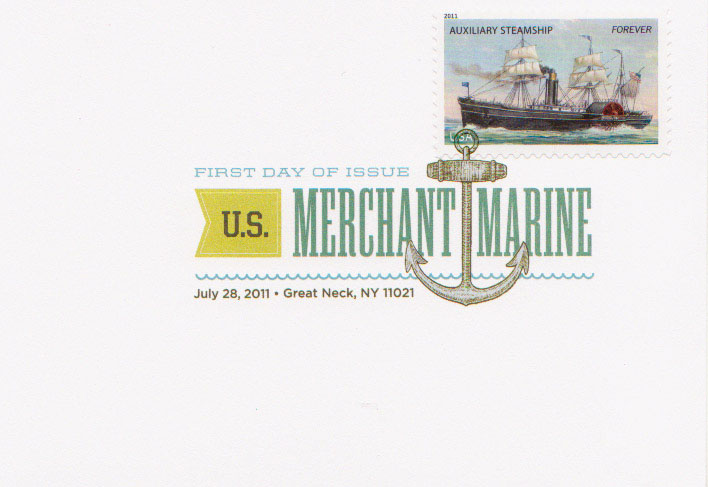 Right: July 2011 U.S. Merchant Marine first day stamp cover.