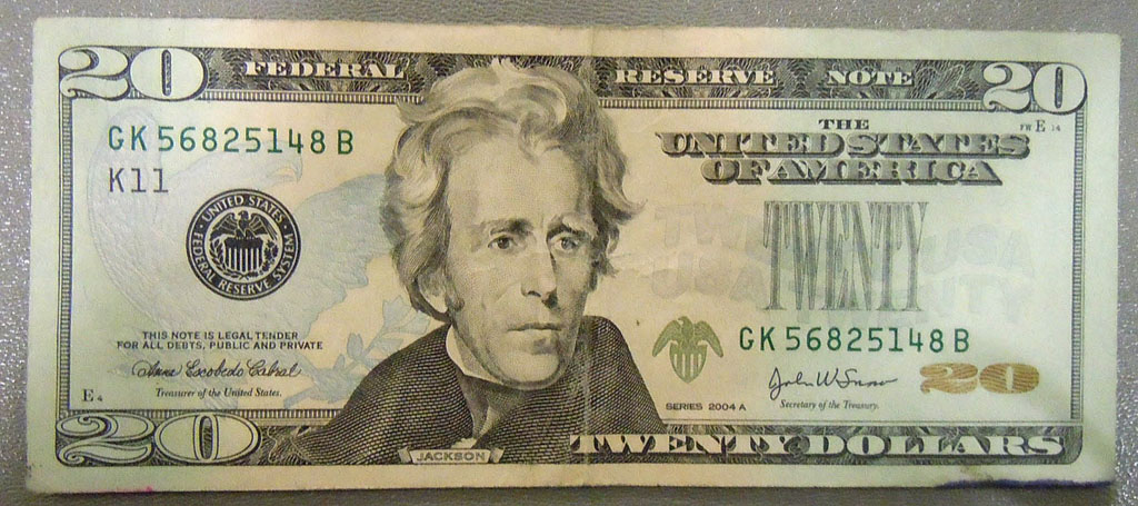 Left: 2004 "No Seal" $20 Federal Reserve Note.