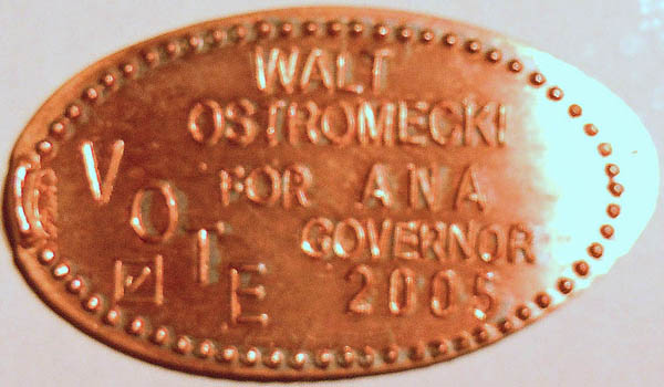 Right: 2005 Walt Ostromecki for ANA Governor campaign elongated cent.