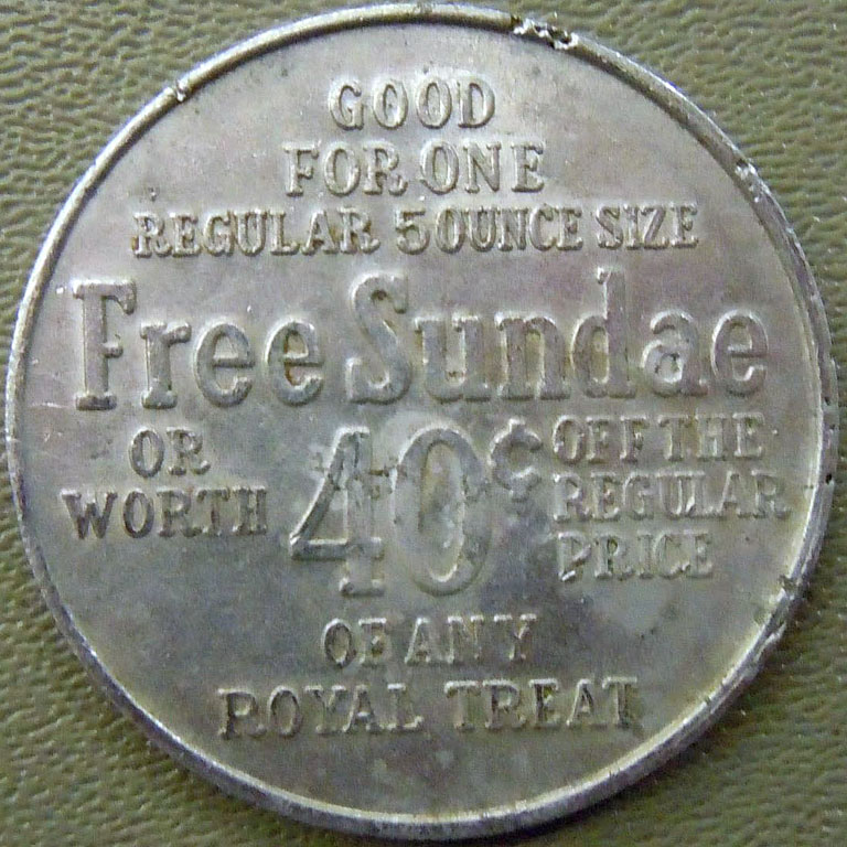Center: Dairy Queen free sundae (or 40 cents) Good For token.