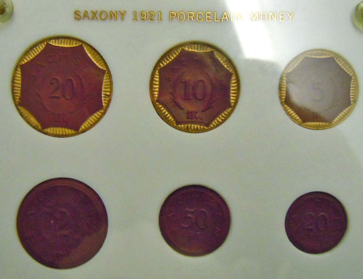 Right: 1921 Saxony porcelain money set.