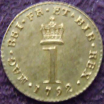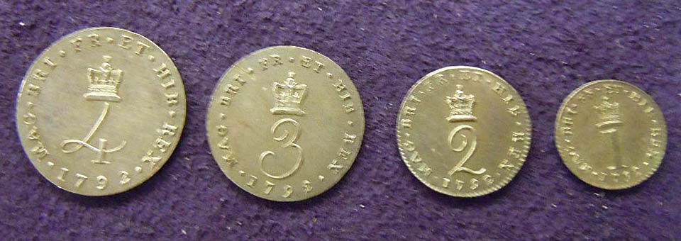 1792 set of British Maundy coinage, including an obverse image depicting King George III.