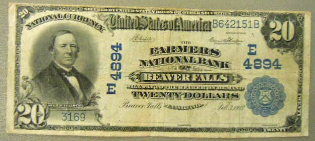 National Bank notes: 1905 Cumberland (MD), 1910 Keeseville (NY), 1913 Farmers NB of Beaver Falls (PA).