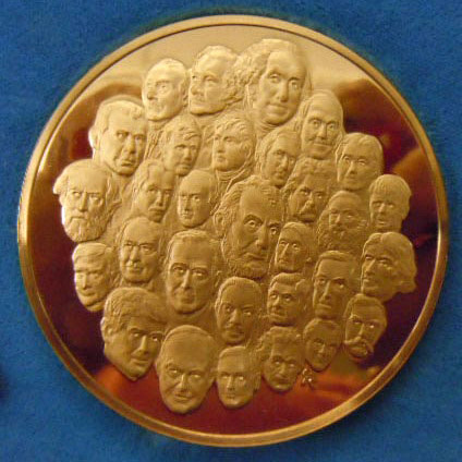 Center: 1776-1976 Franklin Mint bronze bicentennial medal with Washington, Lincoln and