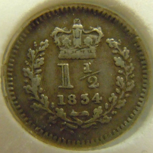 Left: 1834 Great Britain William IV 1-1/2 pence coin (KM# 719).