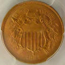 Right: 1864 Two Cent Piece (Large Motto), PCGS MS65RD with CAC sticker.