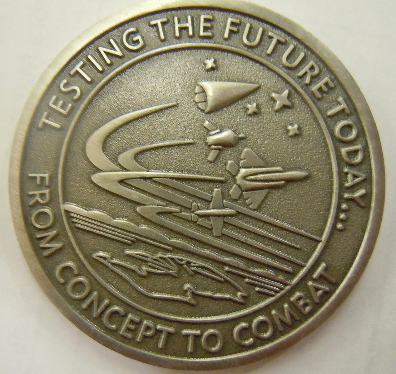 Right: Air Force Flight Test Center, Edwards AFB, CA challenge coin.