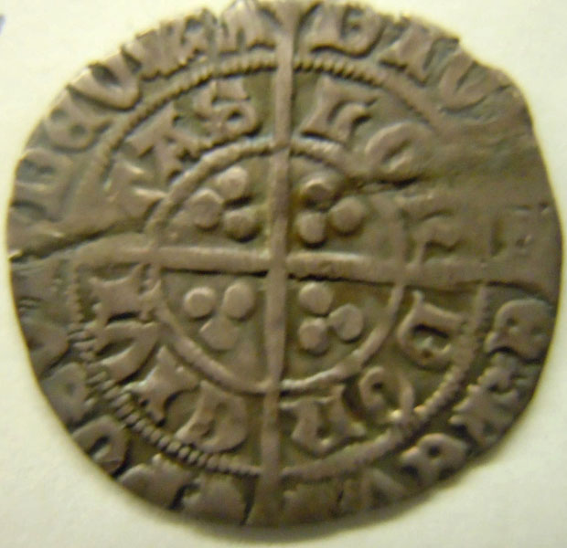 Left: Richard III grout (British medieval coin). Center: 1980 Queen Mother British commemorative coin. Right: 1867 Victoria Florin (British coin, 2 shillings or 1/10 pound).