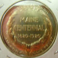 Left: 1820-1920 Maine Centennial commemorative half dollar.