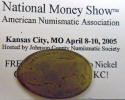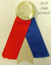 Left/Right Center: 1910 ANA badge / 2005 ANA National Money Show elongated "Buffalo" nickel.