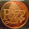 Right: Charmy Harker / "The Penny Lady" copper advertising token.