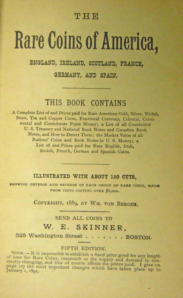 Left: 1889 The Rare Coins of America, etc. illustrated book.